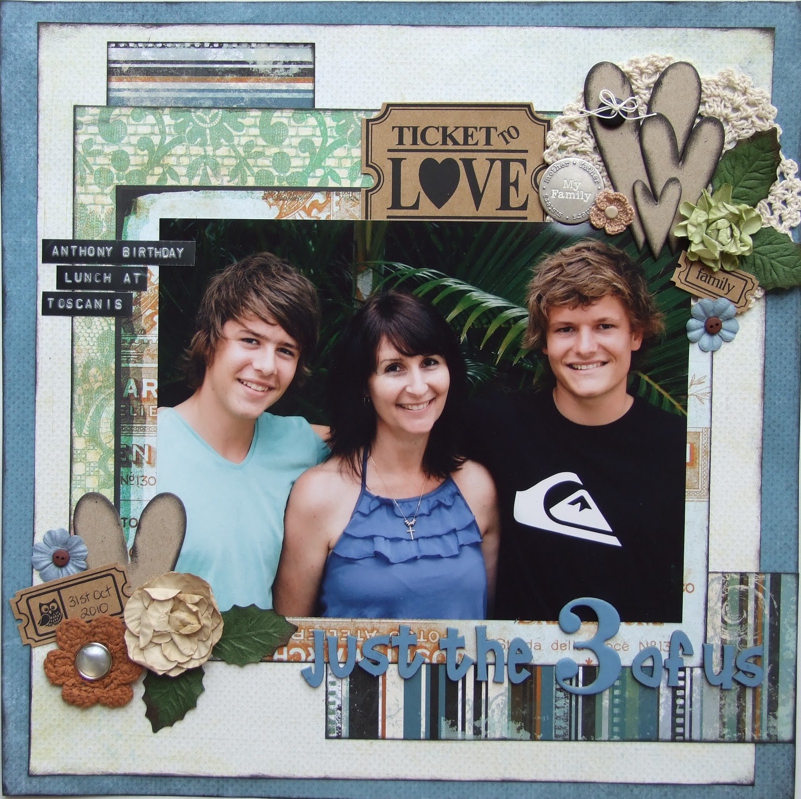 It's been 2 weeks since I participated in the Monday meme, I had all intention of posting last Sunday after coming home soul refreshed from scrapbook retreat at Daisy Chain Scrapbooks. However my eldest son was unfortunate enough to experience drink spiking on Sunday night and we spent most of the evening and Monday tending a violently ill Anthony who had virtually no memory of events after eating Subway. Sadly the litany of nasty side effects will be reminder enough of his night out. Talk about scary! Add to that, dental appointments, doctor's visits, soccer, an after hours vet visit for Bella leaving me $110 poorer, but satisfied that 'sick' Bella was most likely pining for Callum who just happened to be staying overnight with a mate ... *sigh* sweet Bella I'm certain is gold-plated. Enough to turn my carefully planned week into utter chaos!